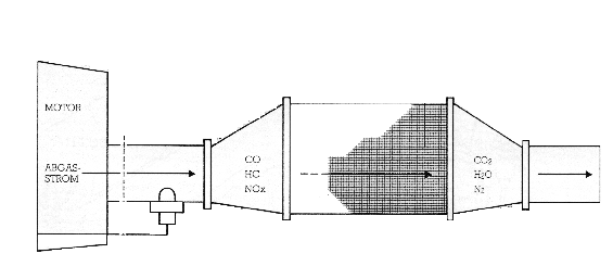 - Verwendung bei Benzingeräten - Das Abgasgemisch wird im Abgasreiniger nachverbrannt. Bei dieser Nachverbrennung werden ab einer bestimmten Temperatur die unerwünschten Abgasbestandteile durch eine weitere Oxidation verringert.