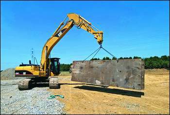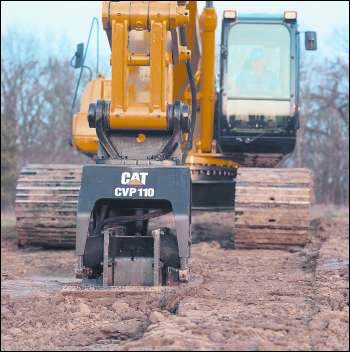 Bild 10: Wo Walzen an ihre Grenzen stoßen, kommt die neue Serie von hydraulischen Bodenverdichtern der Zeppelin Baumaschinen GmbH ins Spiel. Sie lässt sich auch an Kettenbaggern anbauen.