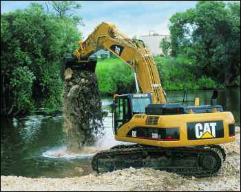 Legendär ist die Belastbarkeit der Cat-Maschinen. Alle Bauteile des stark dimensionierten Laufwerks werden von Caterpillar selbst konstruiert und hergestellt, sodass die Komponenten in Bezug auf Werkstoffauswahl und Härtegrad optimal aufeinander abgestimmt sind. Dennoch konnte auch hier wieder eine Verbesserung erzielt werden: Das Dämpferelement im Unterwagen zur Absorbierung von Stößen und Zugbeanspruchung wurde soweit modifiziert, dass es das Fahrwerk nun noch effizienter schützt. Optional sind außerdem Rammstoßleisten erhältlich, die den Oberwagen vor Beschädigungen schützen. Damit auch unter sehr beengten Verhältnissen mehr Betriebssicherheit beim Maschineneinsatz gewährleistet wird und der Fahrer die Umgebung leichter überwachen kann, wurde das multifunktionale Farbdisplay in der Kabine neu gestaltet und ermöglicht nun auch den Anschluss einer im Heckbereich angebrachten Videokamera, die dem Fahrer den rückwärtigen Raum anzeigt. Um dem Kunden die Möglichkeit zu geben, die Sichtverhältnisse im Frontbereich an die jeweiligen Verhältnisse anzupassen, sind nun auf Anfrage neben der gewohnten Standardscheibe mit einer 50/50-Teilung auch eine 70/30-Teilung sowie eine rahmenfreie, direkt an der Kabine fixierte Scheibe erhältlich. Für eine bessere Leistungsfähigkeit und Konzentration sowie geringeren Belastung des Fahrers wurde der Schalleistungspegel um 3 dB (A) reduziert. Für das menschliche Ohr stellt eine Verringerung von 3 dB(A) eine Halbierung der Lautstärke dar.